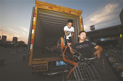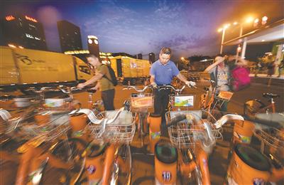 9月10日17點,南京興隆大街地鐵站公共自行車管理員老匡和老戴迎來了一天最忙碌的時候,他倆在空樁和轉(zhuǎn)運車之間來回穿梭,不一會兒就滿身大汗。與此同時,轉(zhuǎn)運車奔波于各站點之間,根據(jù)流量調(diào)整車輛配置。
