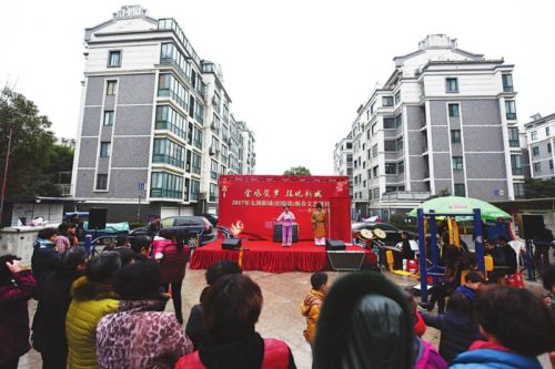 核心提示:昨天下午,雖然室外天氣陰冷,但香江花園熱鬧非凡,滬劇《洞房》、越劇《借紅燈》、錫劇《雙推磨》等耳熟能詳、喜聞樂見的經(jīng)典名劇精彩選段輪番上演,高潮迭起,讓小區(qū)里的居民大飽眼福、耳福,直呼過癮,現(xiàn)場不時(shí)響起陣陣掌聲和歡呼聲。今年71歲的胡奶奶坐在前面,一邊聽一邊跟著舞臺上的演員唱,她樂呵呵地告訴記者,她記得小時(shí)候過年除了穿新衣服,有好吃的,最開心的就是全家人一起扛著凳子去看戲,“現(xiàn)在我已經(jīng)五六十年沒有看過戲了,今天送戲到家門口,真是開心?!?/p>